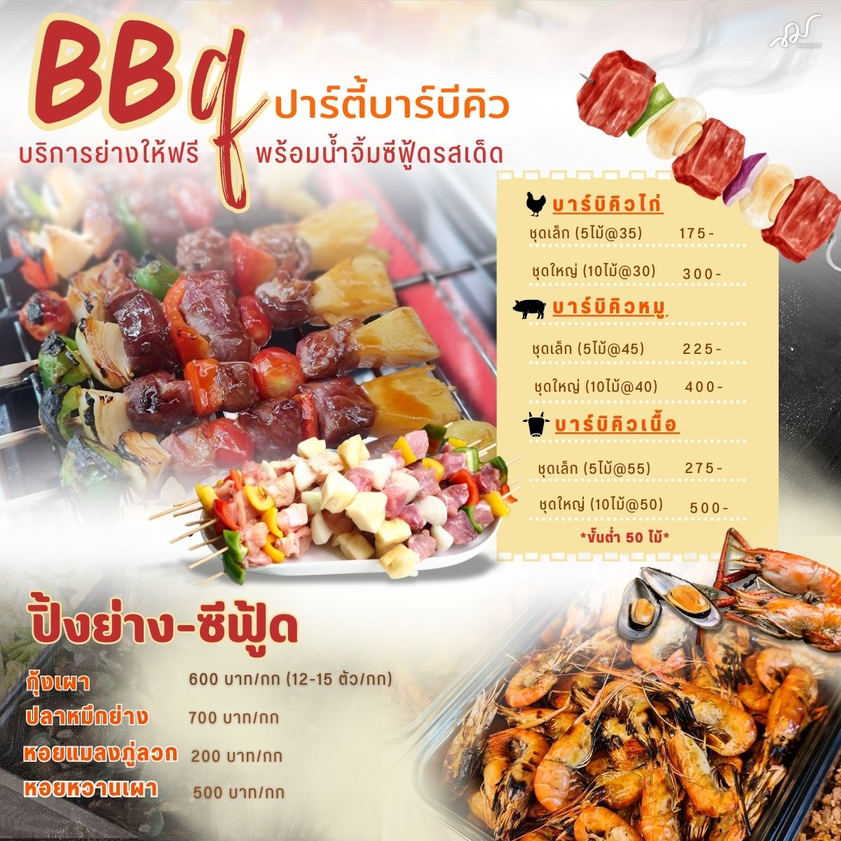 🔥 มีบริการปิ้งย่างสด ๆ พร้อมเสิร์ฟ เหมาะกับปาร์ตี้กลางแจ้งสุด ๆ 🌿