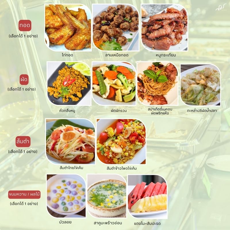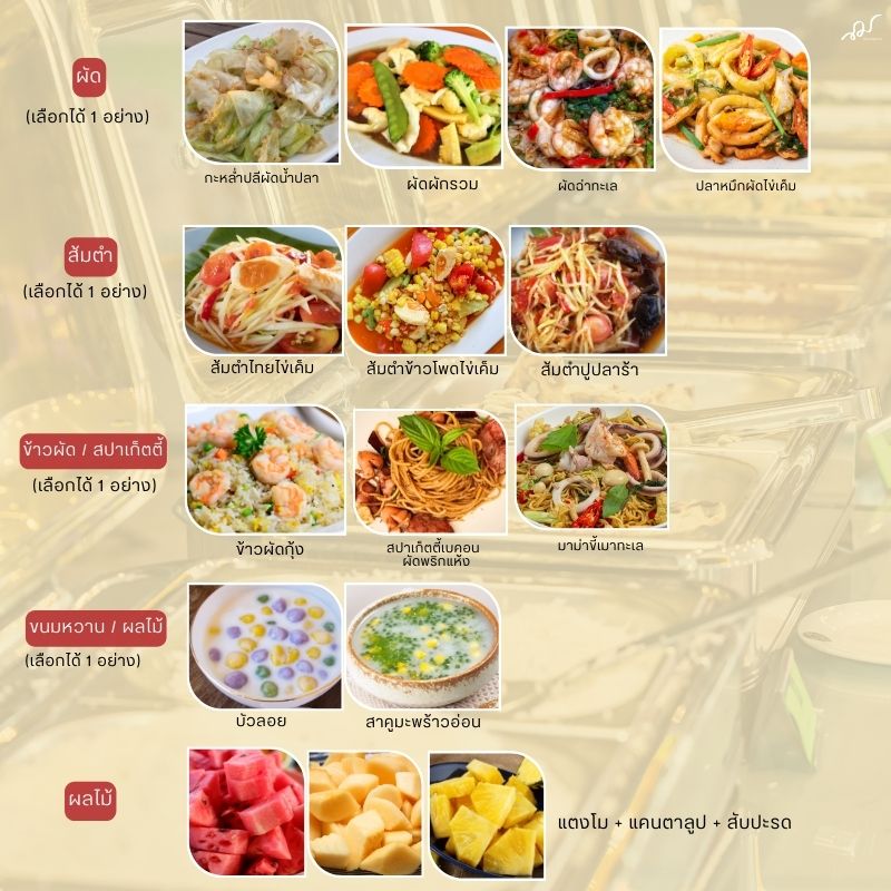 • อาหาร : เลือกได้ 6 อย่าง ตามรายการที่กำหนด